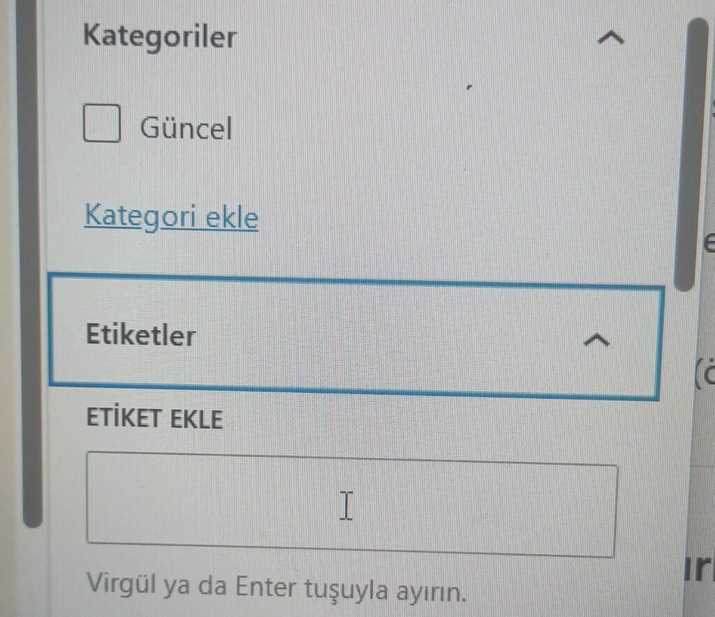 biriken yazıları sonra daha kolay bulmak için hangi konuyla ilgiliyse KATEGORİ ve ETİKET’yoruz. sağ üst köşeden yayınla o kadar..
